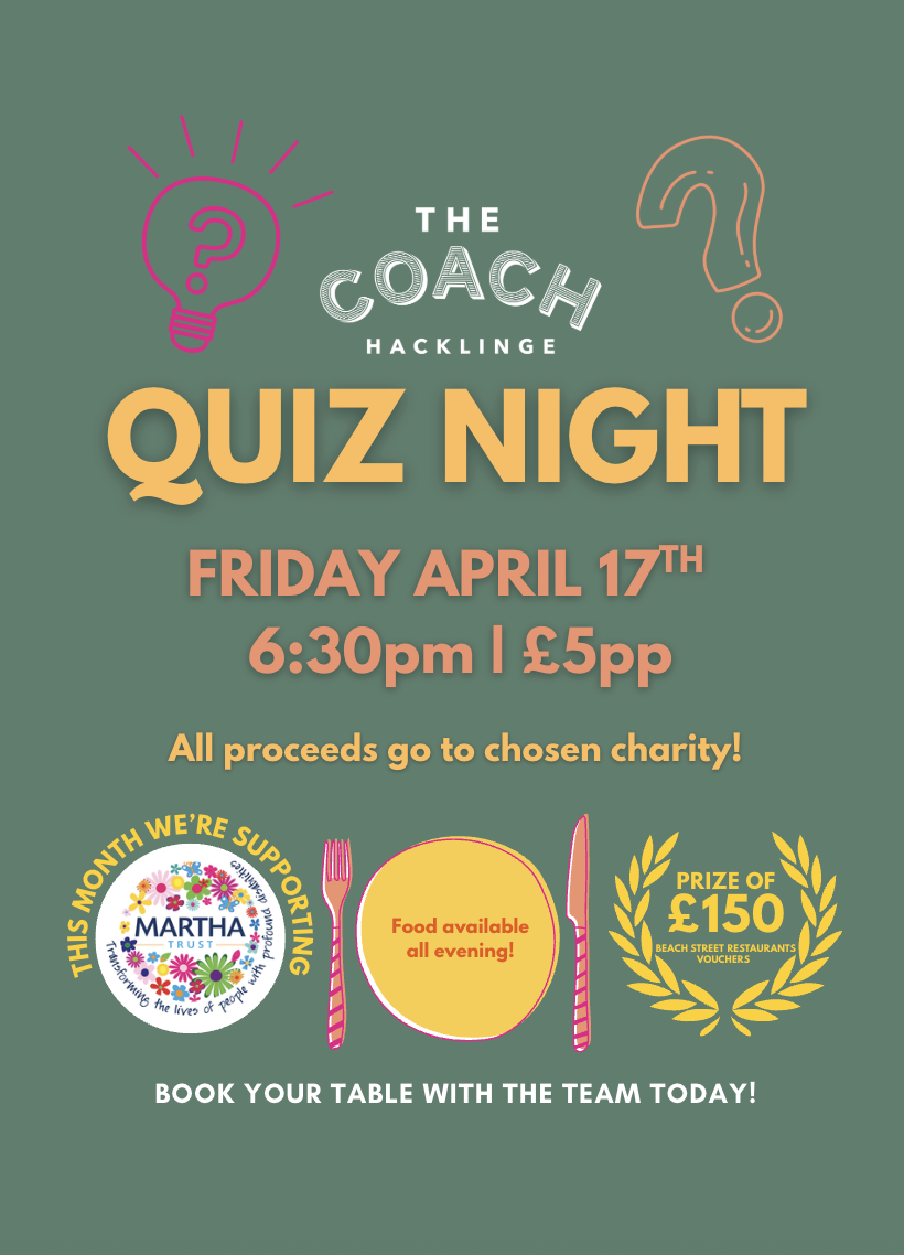 We’re supporting our neighbours Martha Trust for our April Charity Quiz! Grab your best team and book a table for Friday April 17th.